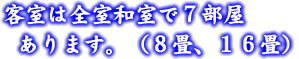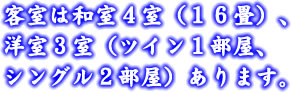 2F・和室4室(16畳)、洋室3室(ツイン1部屋、シングル2部屋)(全室南向 冷暖房、テレビ付/無料、Wi-Fi完備)