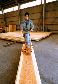 手順として特殊ブラシにより、木目のツヤ出しを行い、布バフにより木目のケバ立ちを押さえて完璧な仕上がりをします。